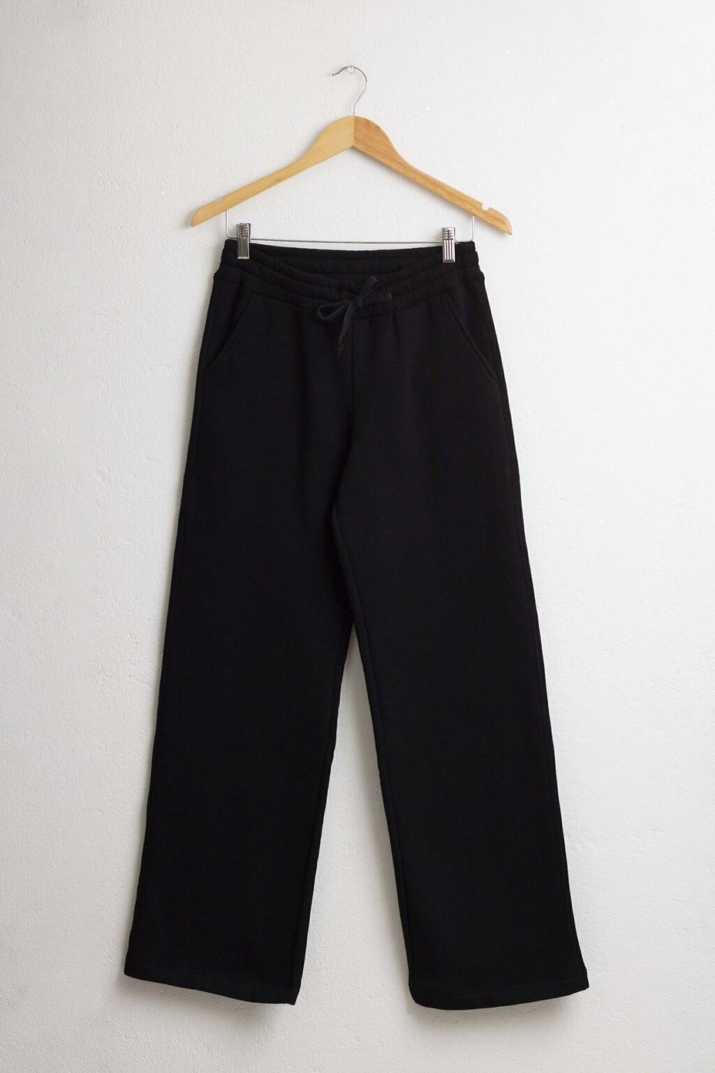 El palazzo Honra está confeccionado en frisa negra, una tela cálida y suave con interior afelpado, ideal para climas frescos sin perder estilo. Su corte amplio desde la cadera hasta el ruedo proporciona un look relajado pero sofisticado, fusionando comodidad y elegancia urbana.Cuenta con una cintura alta elástica, que se adapta al cuerpo sin presionar y tiene un cordón externo para ajuste adicional.